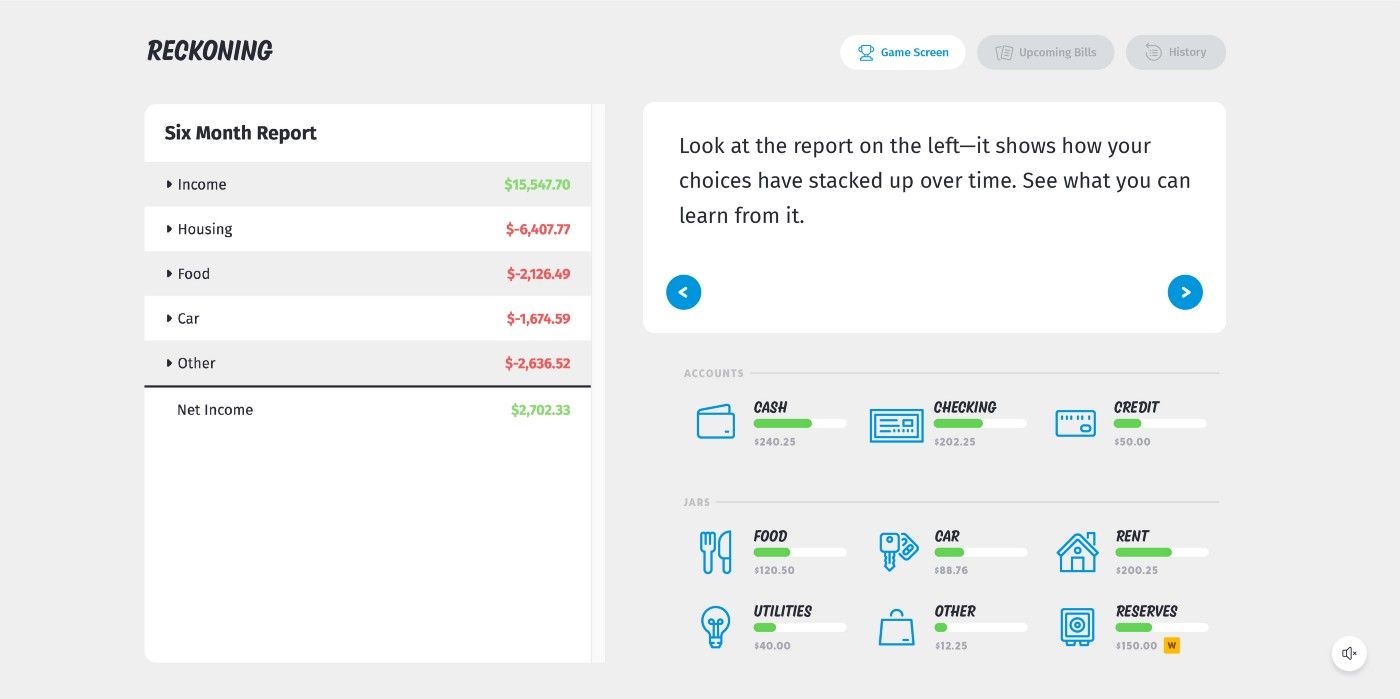 All three courses (Junior, Teen, and Plus) have students manage a budget in a simulated game. It’s like the Oregon Trail of personal finance. They face dilemmas, budgeting decisions, and minor financial crises. In Plus, students have to save up for a down payment on a home.