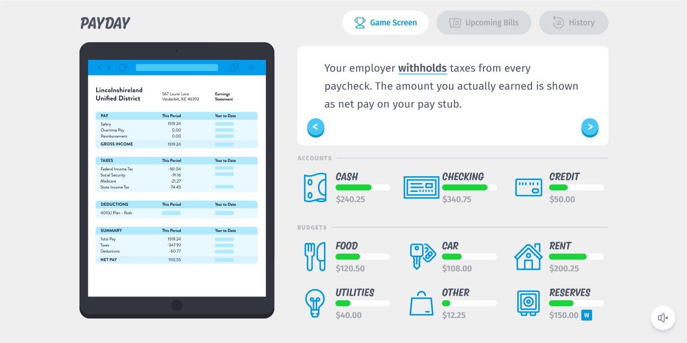Plus gives students several paychecks to practice budgeting with. When students make a spending decision, that decision has far-reaching consequences.