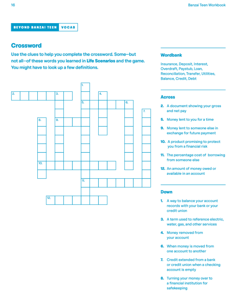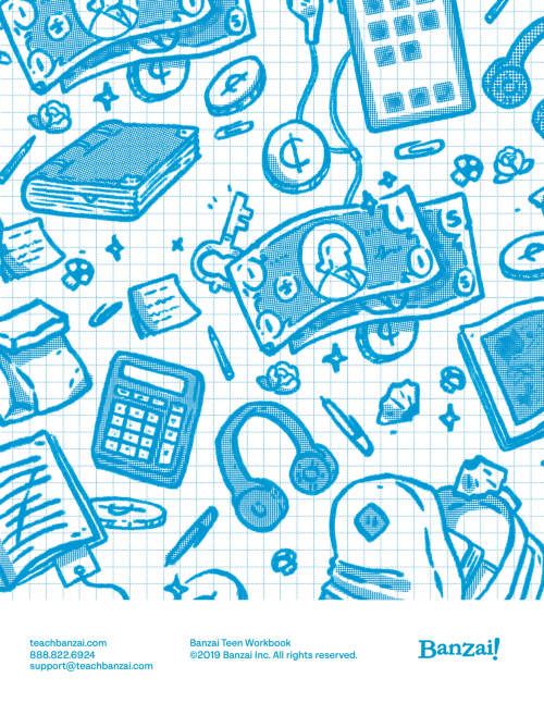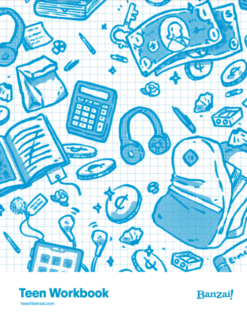 The Teen Workbook is designed for students ages 13–18 and complements the Banzai Teen course (Life Scenarios and the game). Students do NOT need the Teen Workbook to go through the course. In fact, the first four sections of the workbook are completely independent of Life Scenarios and the game, providing additional instruction and education. The last section “Beyond Banzai Teen,” is for students to further consider the concepts they learned in Life Scenarios and the game.