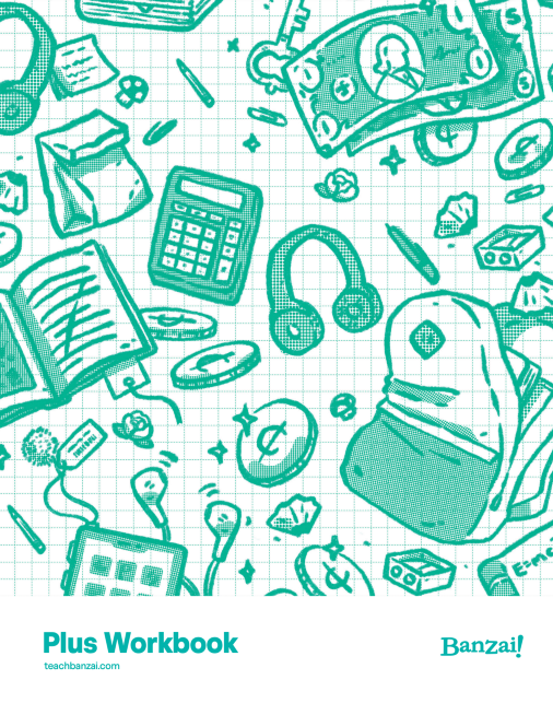 The Plus Workbook was created for students that are 16 or older and complements the Plus course. Like the Teen Workbook, the first four sections of the Plus Workbook can be used separately from the game. “Beyond Banzai Plus,” the last section, is for students that have finished game.