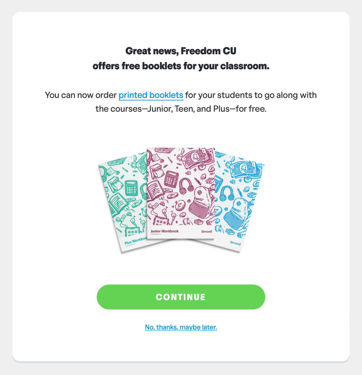 Our current teacher sign-up process asks teachers if they'd like to sign up for books as soon as they've entered the Grading Interface. Our new screens will give teachers the opportunity to say which classes they want before asking about workbooks.