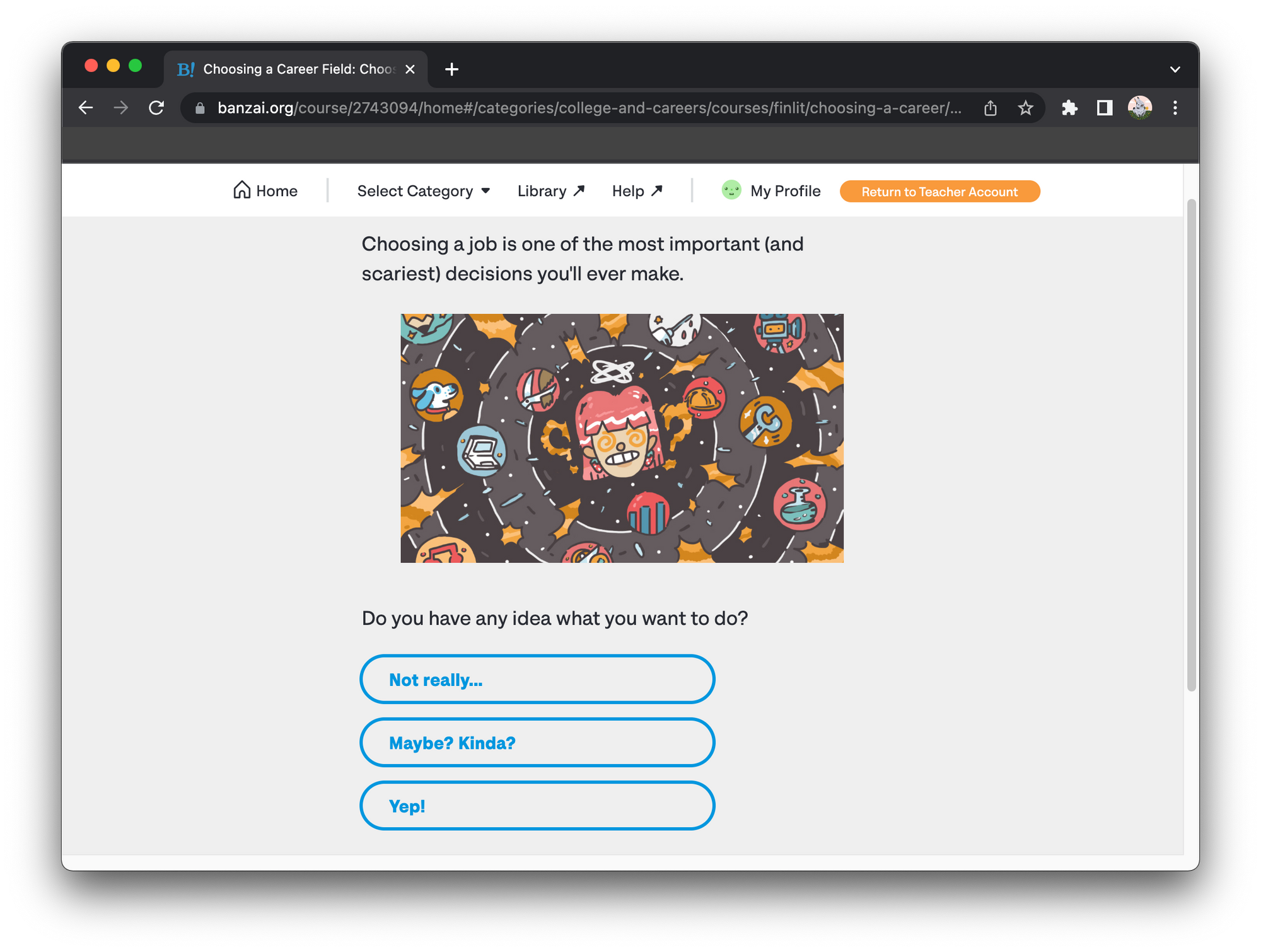 Choosing a career path can be intimidating for a lot of youth—especially when they haven't pinned down their own interests and abilities yet. In this course, students discover what wage, education path, and job that they are most likely to enjoy in the future based on personality and interests.
