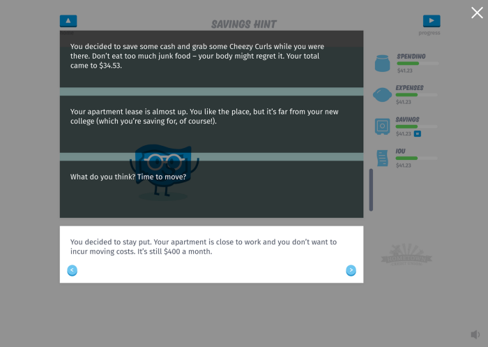 The look-back button helps students who move too fast: they can click back and re-read the text. But, more importantly, the new feature keeps their feet planted in the story — it reminds them where they came from, and how they got there.